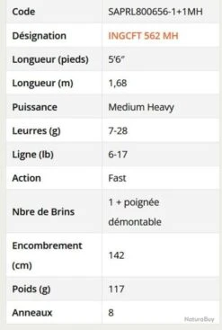 Canne A Leurre Sakura Speciz Spinning 2.0 782 L – 7’8″ 2.33m – 2/7 G – Perch Game